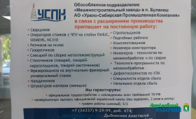 Поэтому, если вы ищете работу и хотите трудиться на динамично развивающемся предприятии, обращайтесь по адресу: п. Буланаш ул. Машиностроителей 27, тел. 8-343-379-29-99 доб.425 (отдел кадров).