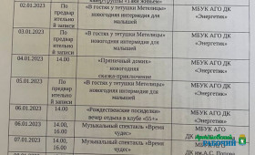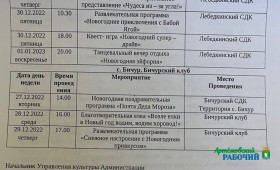 Для маленьких жителей АГО в Домах культуры и Центрах досуга пройдут новогодние сказки, театрализованные представления, музыкальные спектакли и интерактивные программы. Для артемовцев постарше тоже будут подарки: развлечения, концерты и посиделки.