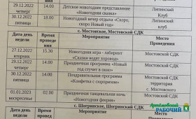 Весело и дружно пройдет празднование Нового года в сельских населенных пунктах. Так, например, в Шогрише, 31 декабря селян ждут на новогоднее театрализованное представление «Вечера на хуторе близ Диканьки», оно начнется в 21.00. Мостовчан приглашают на танцы 1 января. Спустя пару часов после боя курантов, в 02.00 в СДК стартует танцевальная ночь «Новогодняя феерия». Интересно будет и в селе Покровском. В 22.00 31 декабря в Центре Досуга начнется вечер отдыха «Новый год в кругу друзей».