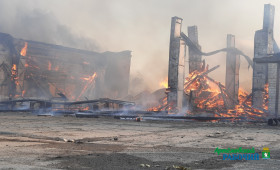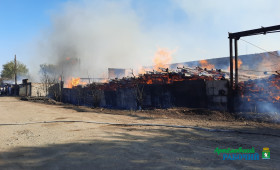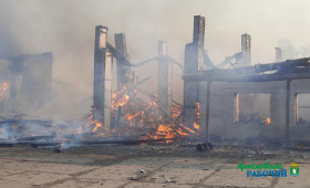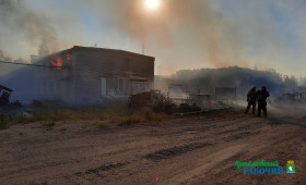 Как сообщают очевидцы, огонь пошёл с "угольника", из-за сильного ветра быстро захватил территорию бывшего ЛПХ. Перекинулся на склады, пилораму, гаражи.