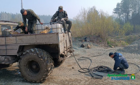 Моя очередная поездка на тушение пожаров начиналась как обычно: вместе с работниками предпринимателя Сергея Уймина (10 человек) заехали на карьер, набрали воды в кубовую емкость. И дальше путь продолжился на вездеходе, иначе не проехать. В этот раз поехали намного дальше - километров за пятнадцать от поселка Красногвардейского, туда, где была опасность подхода огня к поселку. Там уже стояли лагерем специалисты авиалесоохраны из Сосьвы и Алапаевска.