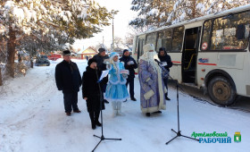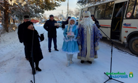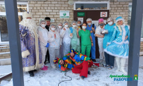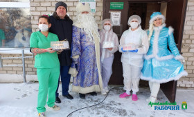 Первые лица АГО приехали в больницу в сопровождении Деда Мороза и Снегурочки. Они передали медицинским работникам слова благодарности от жителей всего городского округа за их героическую работу в период пандемии, высказали медикам наилучшие пожелания, подарили праздничное настроение и сладкие торты.