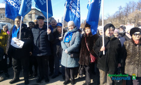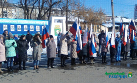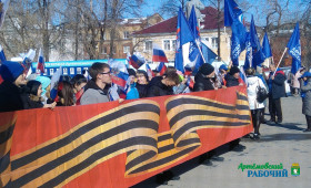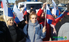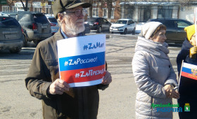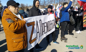 Сотни артемовцев пришли сегодня, 18 марта, на площадь Советов города, чтобы отметить очередную годовщину крымской весны и выразить свою поддержку жителям Донбасса. Люди стояли с флагами, плакатами, многие в руках держали листы со словами: #ZaМир, #ZаРоссию, #ZаПрезидента, #СвоихНеБросаем, #УральскийХарактер.
