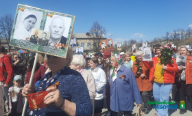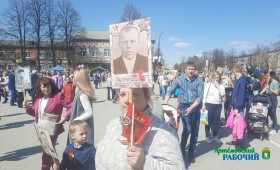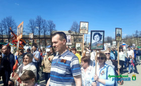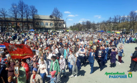 Единым строем с портретами прадедов, воевавших и трудившихся в Великую Отечественную войну, артемовцы прошли по ул. Коммунаров, Молодежи, Садовой, Физкультурников. Завершилась масштабная акция церемонией возложения цветов к Вечному огню в сквере Победы.