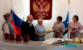 Это событие состоялось в городском ЗАГСе на прошлой неделе, 9 июня. На встречу собрались представители социальной защиты населения, администрации города, родные и близкие тех, кто прожил в любви и согласии 50 лет. Под звуки свадебного марша для награждения знаком отличия Свердловской области «Совет да любовь» в зал вошли пять супружеских пар: Раиса и Анатолий Анохины, Светлана и Алексей Кожевины, Надежда и Виталий Мироновы, Лидия и Павел Первушины, Людмила и Виктор Упоровы. Именно им были адресованы в тот день громкие аплодисменты и поздравления за совместно прожитые годы.