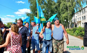 В честь Дня ВДВ в Артемовском у памятника "Участникам локальных войн и конфликтов" прошел традиционный праздничный митинг. В адрес десантников звучали слова уважения и благодарности, пожелания благополучия и крепкого здоровья. Минутой молчания почтили память погибших сослуживцев.