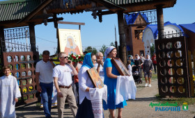 После нее был совершён крестный ход по улицам города с храмовой иконой Божией Матери «Умиление», вновь написанной в 2016 году, после пожара.