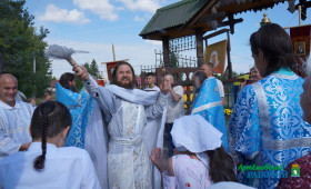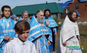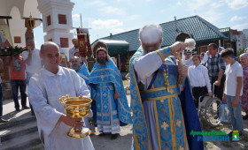 Знаменательно, что впервые за шесть лет после закладки первого камня в основание нового храма, Божественная Литургия на престольный праздник проходила в самом здании строящегося храма. До этого момента престольный праздник проходил на улице, у поклонного креста.