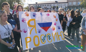 В Артемовском во вторник на площади Советов собралось много народа. Здесь были все от мала до велика: школьники и студенты колледжей, воспитанники спортивных секций, юнармейцы, представители общественных организаций, предприятий, казаки и ветераны разного рода войск. Артемовцы приходили целыми семьями. Всех объединил российский триколор.