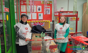 Несмотря на морозную погоду, акция состоялась, и нашим волонтерам удалось набрать продовольственных товаров общим весом 1064 килограмма. Из собранного продовольствия будет сформировано 177 продуктовых наборов.