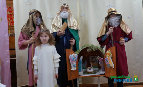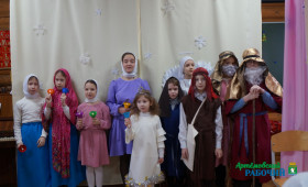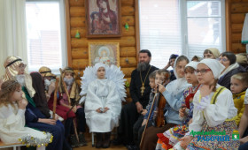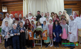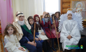 Концерт начался со спектакля, в котором учащиеся детской воскресной школы рассказали историю рождения Иисуса Христа. Зрители увидели Вифлеемскую звезду (роль которой сыграла самая юная участница спектакля, пятилетняя Маша Вахрушева), освятившую путь к Новорожденному Богомладенцу, волхвам (Вахрушев Матвей, Зырянов Илья, Савельев Мирослав); вместе с пастухами (Зырянов Денис, Карман Андрей) услышали от Ангела (Савельева Милана) радостную весть о рождении Спасителя. И взрослые, и дети переживали за Иосифа (Тютин Анатолий Афанасьевич) и Марию (Гаврилова Анна), которым не нашлось места ни в одном доме ночного Вифлеема. А рассказывала историю маленькая рождественская свечка (Черемных Света). Спектакль украсили старые добрые рождественские колядки.