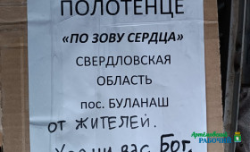 Администрация Артемовского городского округа благодарит за неравнодушие и активную гражданскую позицию всех жителей, кто принял участие в акции по сбору помощи. Особая благодарность коллективам образовательных организаций, учреждений культуры, санаторию-профилакторию «Юбилейный», Районному совету ветеранов, общественной организации «Союз Чернобыль», группе жителей поселка Буланаш «По зову сердца», группе жителей «Бумеранг Добра» и команде Евгении Деевой.