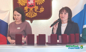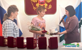 Вначале поздравили многодетных матерей. Им вручили цветы, грамоты, торты и, конечно же, знаки отличия «Материнская доблесть» 3 степени. В этот день три мамы получили свои заслуженные награды: Кристина Олеговна Пенчева, Ирина Сергеевна Поликарпова, а также Анна Петровна Попова.