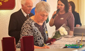 А семейных пар, которые тоже не остались без подарков и получили знаки отличия «Совет да любовь» было сразу семь: Аминя Тимиргалеевна и Разиф Фатхлбаянович Янгировы, Вера Ивановна и Михаил Петрович Коньковы, Виталия Львовна и Анатолий Алексеевич Корелины, Нина Анатольевна и Валерий Аркадьевич Мироновы, Татьяна Михайловна и Василий Степанович Решетниковы, Екатерина Семеновна и Александр Григорьевич Кощеевы, а также Раида Вальтеровна и Павел Андреевич Соловьевы.