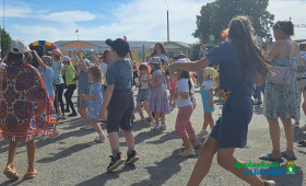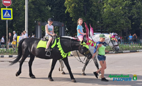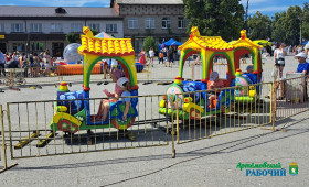 Праздник, как обычно, охватил все окружающее пространство - и площадь Советов, и аллею Победы. Работали торговые точки, детские аттракционы, ребятишки катались на лошадках, на верблюде и даже на маленьком двухэтажном автобусе. Также был открыт библиотечный дворик, где было интересно не только детям, но и взрослым.