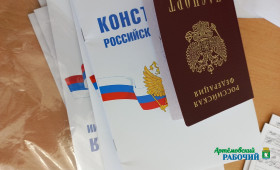 Очень памятным этот праздничный день станет для молодых артемовцев, которые выходили на сцену для получения своего главного документа – паспорта гражданина Российской Федерации. Паспорта вручила старший лейтенант полиции отделения по вопросам миграции ОМВД России города Артемовский Марина Леонидовна Винокурова.
