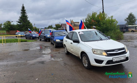 Григорий Пономарев выступил в роли ведущего колонны, задавая темп автопробегу. Машины, выстроенные в цветах флага Российской Федерации, проехали большой путь от площади Советов до железнодорожного вокзала через поселок Буланаш, захватывая район 1/2.