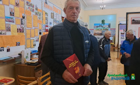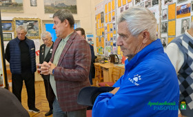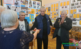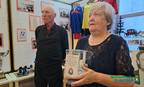 Какая же праздничная встреча обойдется без подарков? Точно не эта! Любовь Меньшенина задала каверзный вопрос гостям выставки, на который смог ответить лишь один человек, за что ему была вручена авторская книга «Комсомол - это весна, переходящая в лето». Эти же книги, подписанные Любовью Никандровной, были подарены алапаевцам. А Константин Трофимов поздравил с юбилеем и вручил подарок одному из гостей, ведь ему исполнилось 70 лет.