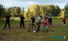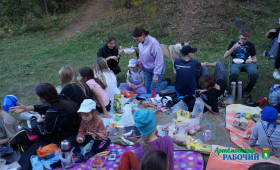 Завершился поход самыми любимыми играми - перетягиваним каната и футболом. В перетягивании каната, на удивление взрослых, победили мальчишки! А в футболе девичья команда оказалась так сильна, что мужской пришлось согласиться на ничью. После футбола всех ждал сюрприз - большой сладкий арбуз и сочная дыня!