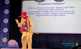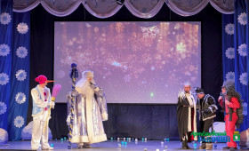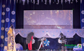 Для детишек работники Дворца культуры подготовили сказочное представление. Главными героями были: Злодей Креон, который украл снежинки, его помощники Ёж и Котяра, снеговик Снежик и его команда снеговичков.