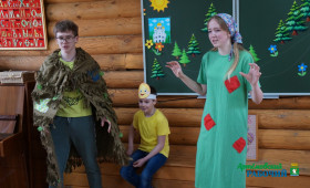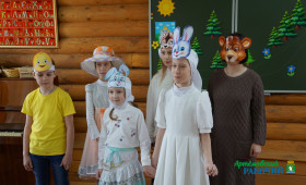 Оказалось, что звери тоже знали про Великий праздник, но праздновали они его по-своему: кто под музыку развлекался, кто в модных нарядах щеголял, кто радовался дополнительному выходному дню, чтобы поспать. А маленький зайчишка, который только что родился, и вовсе испугался, отчего колокола звонят так громко? Но колобок всех взял с собой, чтобы показать, как люди Пасху празднуют. Встретились им по дороге Леший (Зырянов Илья) с Кикиморой (Чагина Полина), которые захотели им праздник испортить, да ничего у них не вышло. Окропил всех Батюшка святой водой (а это был самый настоящий батюшка – духовник школы иерей Андрей Малашенко). Колобок и звери так обрадовались! А Леший с Кикиморой сначала испугались, а потом раскаялись и попросили у всех прощения. И поняли все, как надо Пасху праздновать. Нужно Богу молиться и радость свою другим дарить! И тогда она станет огромной-огромной - такой, что на весь мир хватит! А рассказывали сказку юные сказочницы – ведущие Черемных Светлана и Меркулова Аня.
