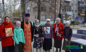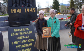После молебна по многолетней традиции все отправились к памятнику артемовцам, ковавшим победу на фронте и в тылу. Там состоялась лития об упокоении всех тех, кто не пощадил своей жизни в борьбе с фашизмом, защищая нашу Отчизну. К Вечному огню были возложены цветы от благодарных наследников Великой Победы. Дети из воскресной школы прихода поздравили прихожан ветеранов с праздником и вручили им Пасхальные открытки, которые сделали своими руками.