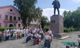 Сегодня у памятника Артему звучали песни, стихи, собравшиеся любовались танцами - так у нас начались поздравления с Днем города!