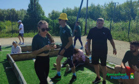 Каждый рывок, каждое усилие встречались бурными аплодисментами. Параллельно на соседней площадке развернулась не менее захватывающая другая борьба - прыжки с завязанными ногами. Команды, демонстрируя ловкость и слаженность, пытались опередить друг друга, иногда вызывая смех и подбадривающие крики соревнующихся.