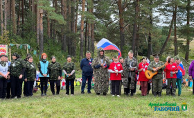 Право поднятия флага ГАУСО СО «КЦСОН Артемовского района» для открытия турслета было предоставлено команде- победительнице «Покровского привала - 2024» - «Локомотив» (ветеранская организация узла ст. Егоршино РЖД).