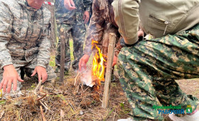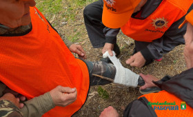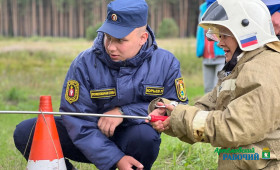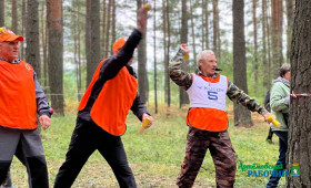 И вот после официальной церемонии был дан старт полосе препятствий, в котором участвовали по четыре человека от каждой команды. Им предстояло попасть в мишень спортивной гранатой, проползти под натянутыми веревками, перебинтовать и перенести раненого, разжечь костер и «порыбачить».