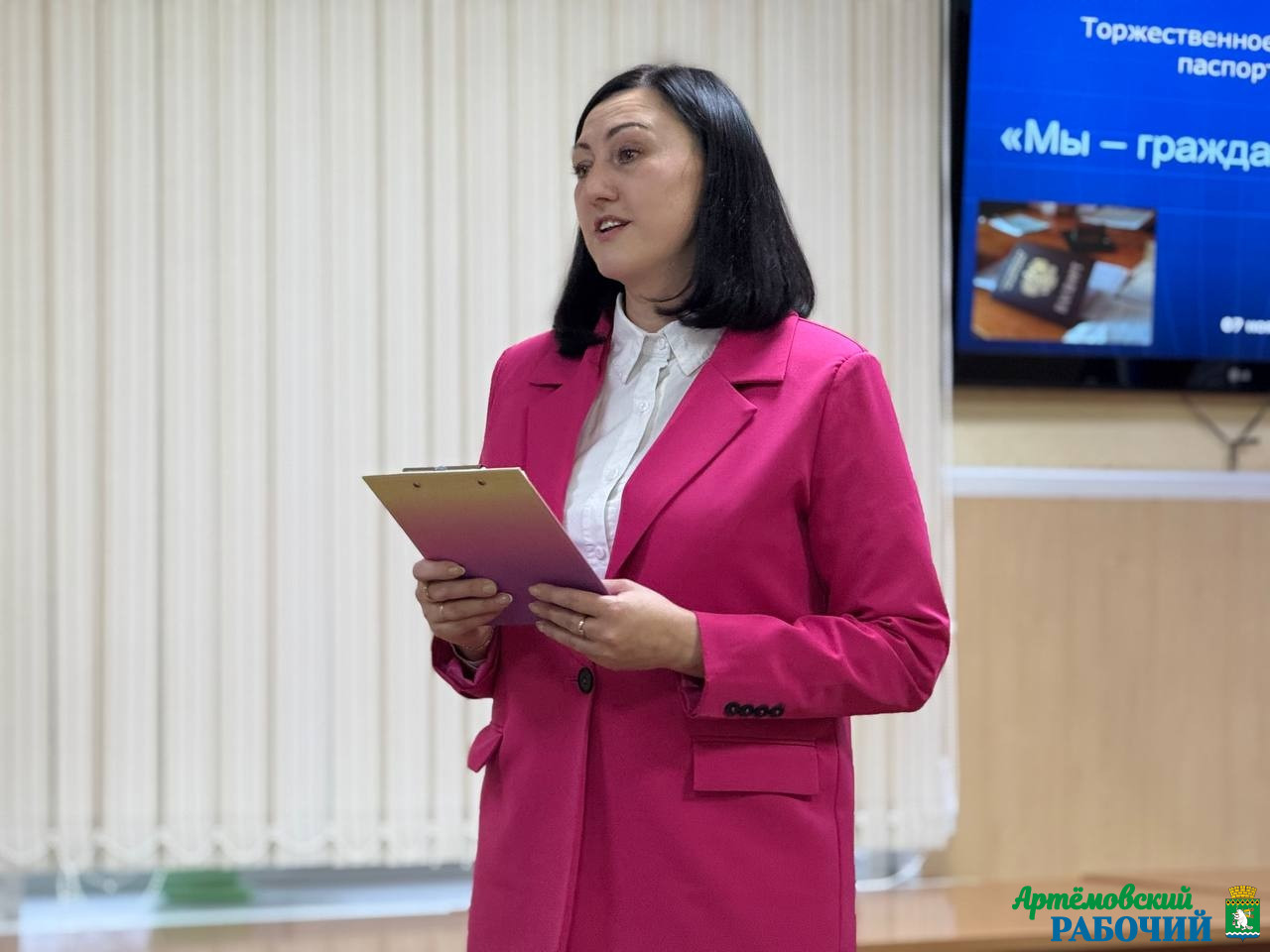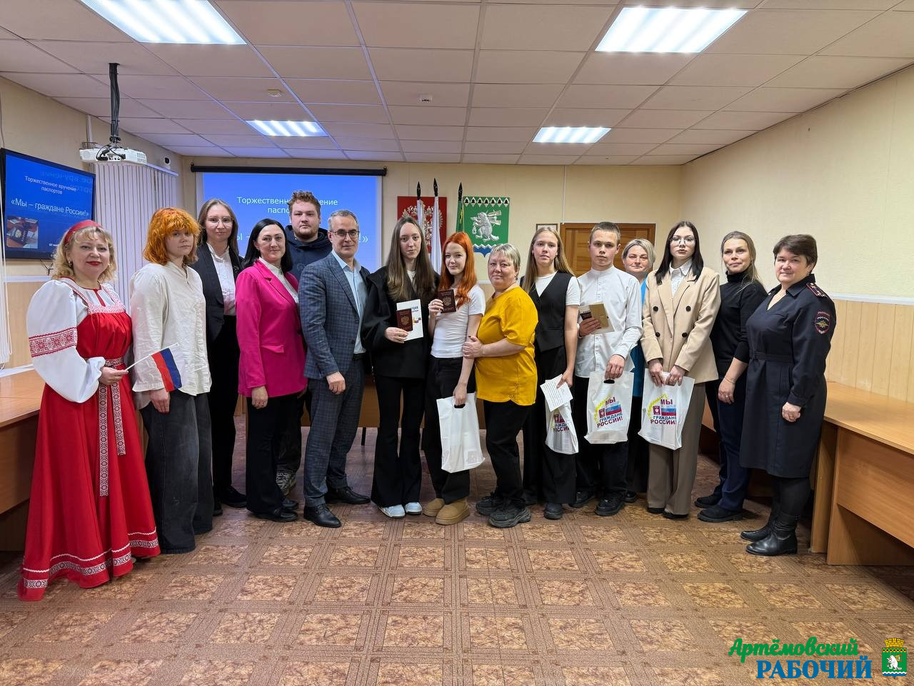 Паспорта ребятам вручили врип главы Артемовского муниципального округа Андрей Иванович Клименко, старший инспектор отделения по вопросам миграции ОМВД России «Артемовский» капитан полиции Надежда Геннадьевна Колпакова и председатель совета по делам молодежи Артемовского муниципального округа Ксения Рудольфовна Михайлова.