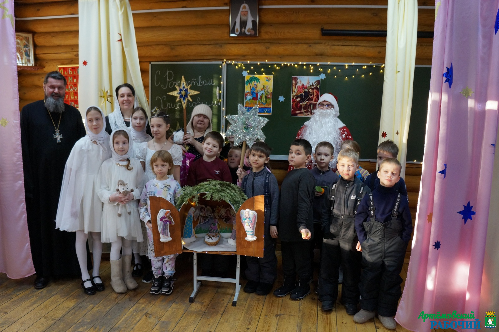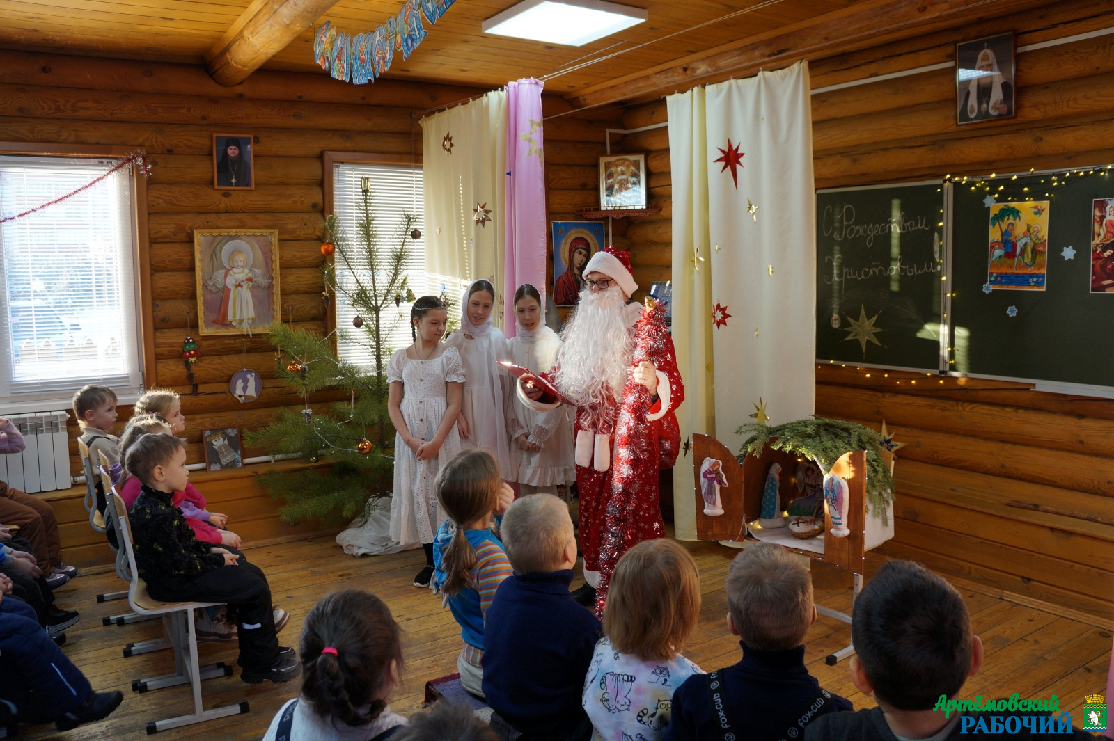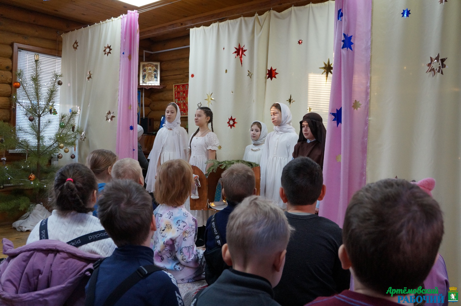 На Святках в детскую воскресную школу прихода в честь иконы Божией Матери "Умиление" г. Артемовского пришло много маленьких гостей: подготовительные группы из близлежащих детских садов МБДОУ №23 и №33.