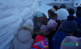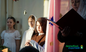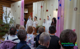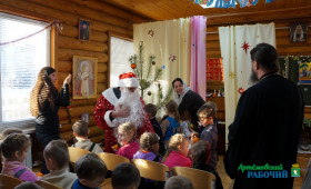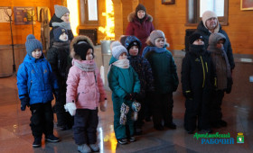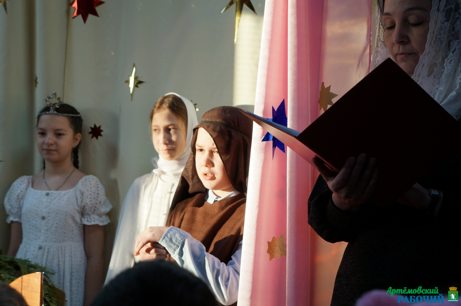 В храме детей встретили настоятель иерей Андрей Малашенко и завуч воскресной детской школы А. В. Абакумова. После краткого рождественского молебна Алена Викторовна провела небольшую экскурсию по храму. А в Духовном центре ребят ждали воспитанники школы, которые показали рождественский спектакль.