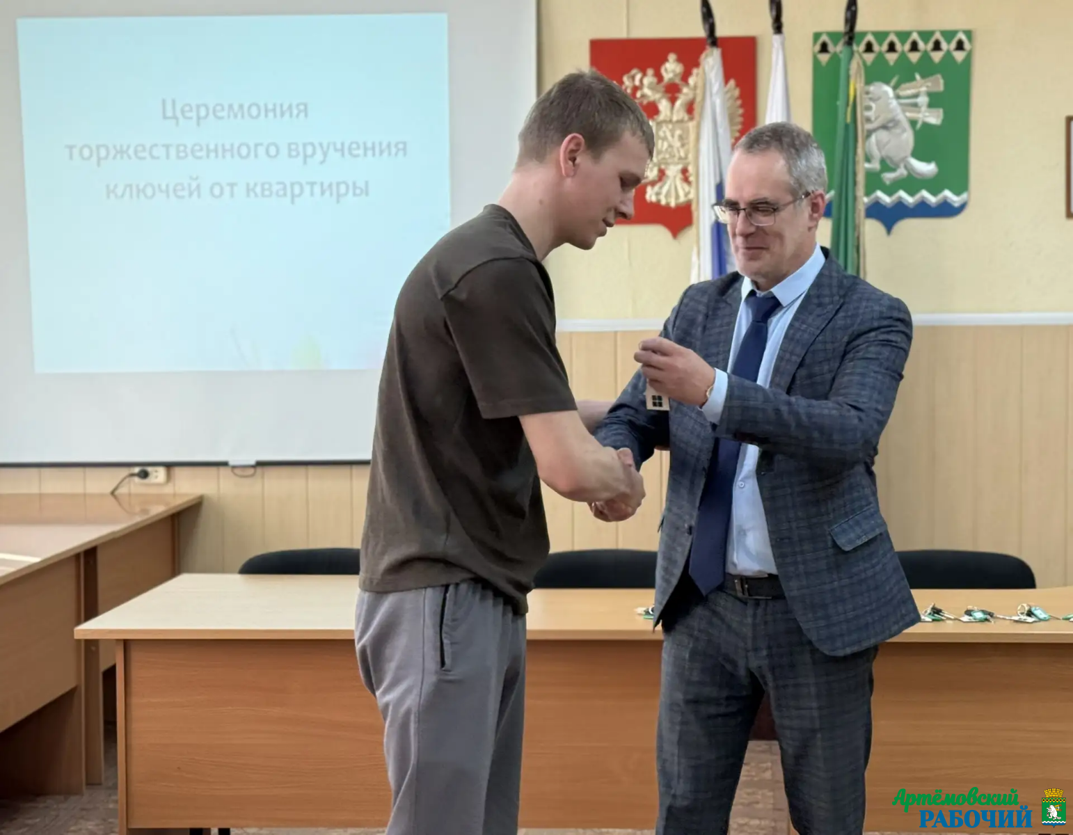 Сегодня глава Артемовского муниципального округа Андрей Клименко и заместитель начальника Управления социальной политики №2 Светлана Харченко торжественно вручили ключи от квартир детям-сиротам и детям, оставшимся без попечения родителей. 16 человек смогут отметить новоселье уже в ближайшие дни.