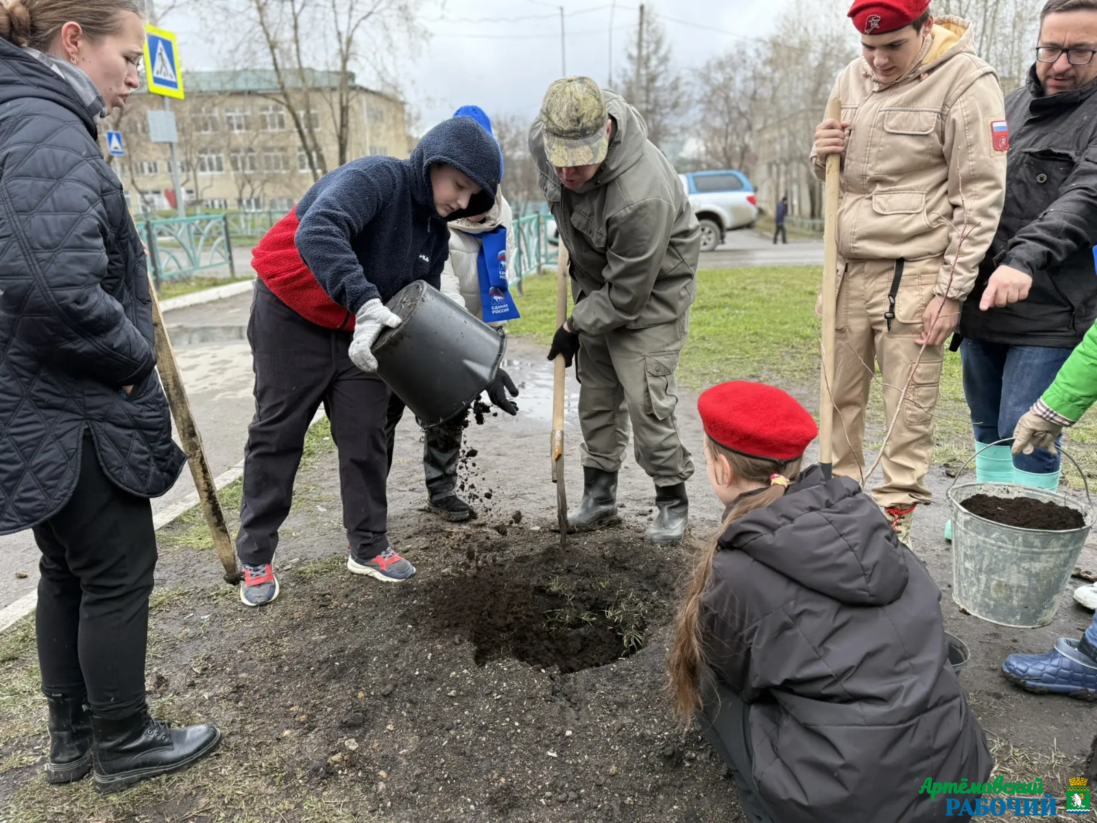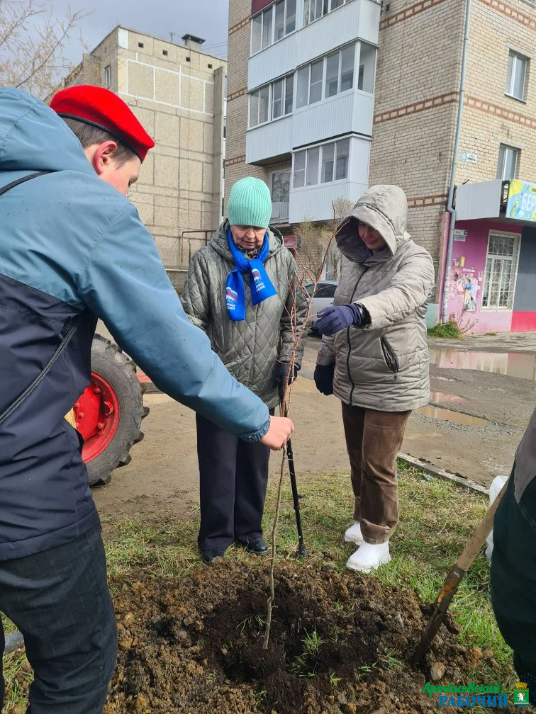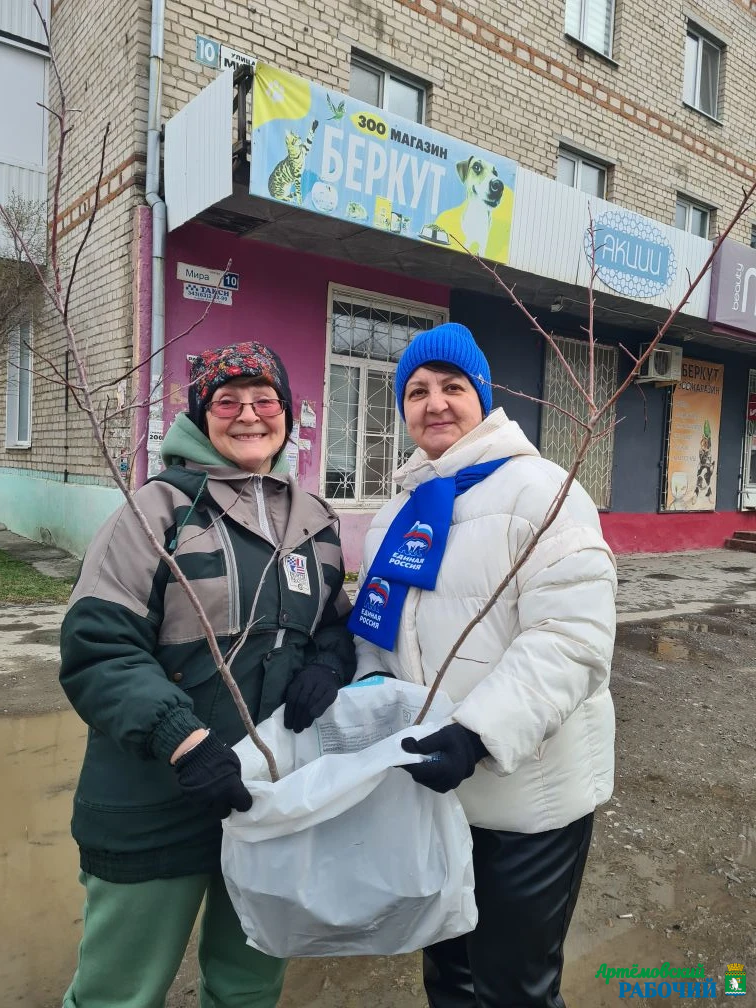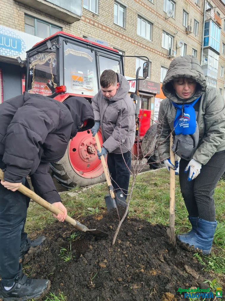 Сегодня у редакции газеты «Артемовский рабочий» собрались жители города, чтобы провести замечательную акцию – высадить яблони и кусты сирени вдоль центральной улицы Мира. Инициатором такой идеи стал политсовет местного отделения партии «Единая Россия».