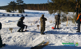 На Пионерской поляне за селом Покровским собрались все 12 команд, причем, одна из них женская, участвующая впервые. На кону стояли солидные призы - путевки на лицензионных животных: первое место - лось, второе - косуля, третье - кабан. И некоторые команды подошли к такой гонке мужества очень серьезно, они заранее провели длительные тренировки в ходьбе на широких лыжах, стрельбы по мишеням пулями. И все же добиться победы было не так просто, как кажется. Каждый участник должен был пробежать по два круга - по одному километру каждый, и выстрелить пулями из гладкоствольного ружья по мишени кабана. При этом у многих лыжи не желали забираться в горку, а руки тряслись от волнения после бега. Но все участники мужественно преодолели дистанцию, метко отстрелялись.