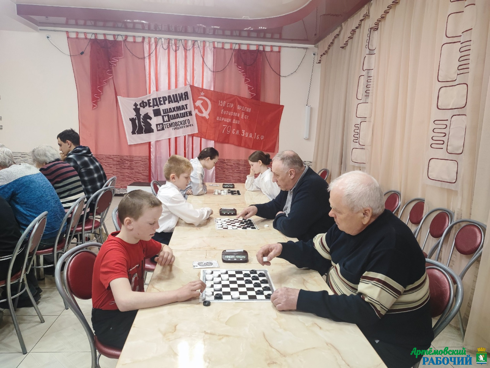 В субботу 5 апреля в ДК им. А.С. Попова прошло первенство Артемовского муниципального округа по шашкам. 26 участников разного возраста играли 7 туров одним общим турниром.